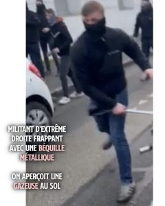 Quentin Deranque faisait parti du commando d’une quinzaine d’individus cagoulés, armés de barre de fer, de bombes lacrymogènes, de gants à coques et certains de casques de motos qui tendit un guet-apens à de jeunes étudiants et jeunes travailleurs antifascistes se rendant (on peu le penser) à la conférence de la députée européenne LFI Rima Hassan donnée à l’Institut d’Etudes Politique de Lyon (1) à 300m du lieu de la rixe. Dans ce commando a pu être reconnu celui qui met des coups avec la béquille (Valentin Seddas, militant d’Héritage et hooligan lyonnais), aussi reconnu en première ligne et en position de garde prêt à porter des coups sur les militants de gauche un autre membre de Héritage et ultra de l’OL (Antoine Tignel ). Il sera reconnu lors de la bagarre après que son cache-cou ait été arraché. Une semaine avant l’attaque à proximité de la conférence de Rima Hassan, le jeudi 5 février, une descente fasciste a visé des étudiants à l’université Lyon 3. Seddas et Tignel étaient tous deux présents et ont frappé des personnes au sol.